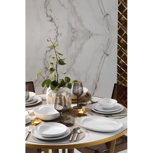 Setul de cina are o culoare alba clasica care completeaza fara efort orice aranjament de masa, fiind perfect atat pentru intalniri ocazionale, cat si pentru ocazii formale. Designul sau atemporal asigura ca nu se va demoda niciodata, permitandu-va sa va bucurati de frumusetea sa pentru multi ani de acum incolo.