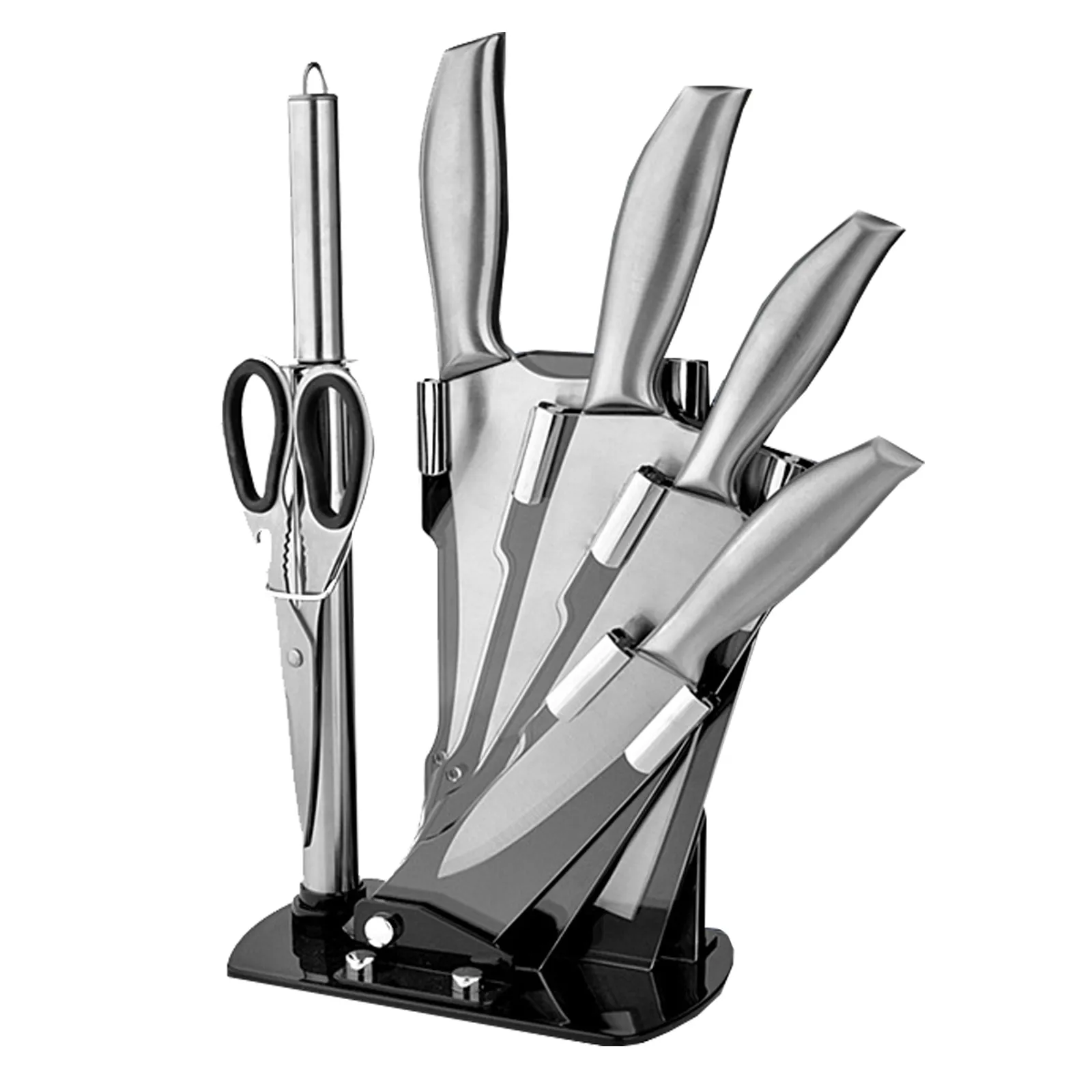 Set de cutite profesionale 7 piese, Zggzerg, Cu suport acrilic si foarfeca, Design ergonomic, Lame ascutite, Usor de curatat, Otel inoxidabil, Argint