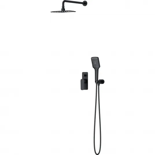 Set de dus Cersanit Larga B344 S952-031, baterie incastrata cada/dus, cartus ceramic + dus tavan, dus mobil + furtun dus 150cm, Negru