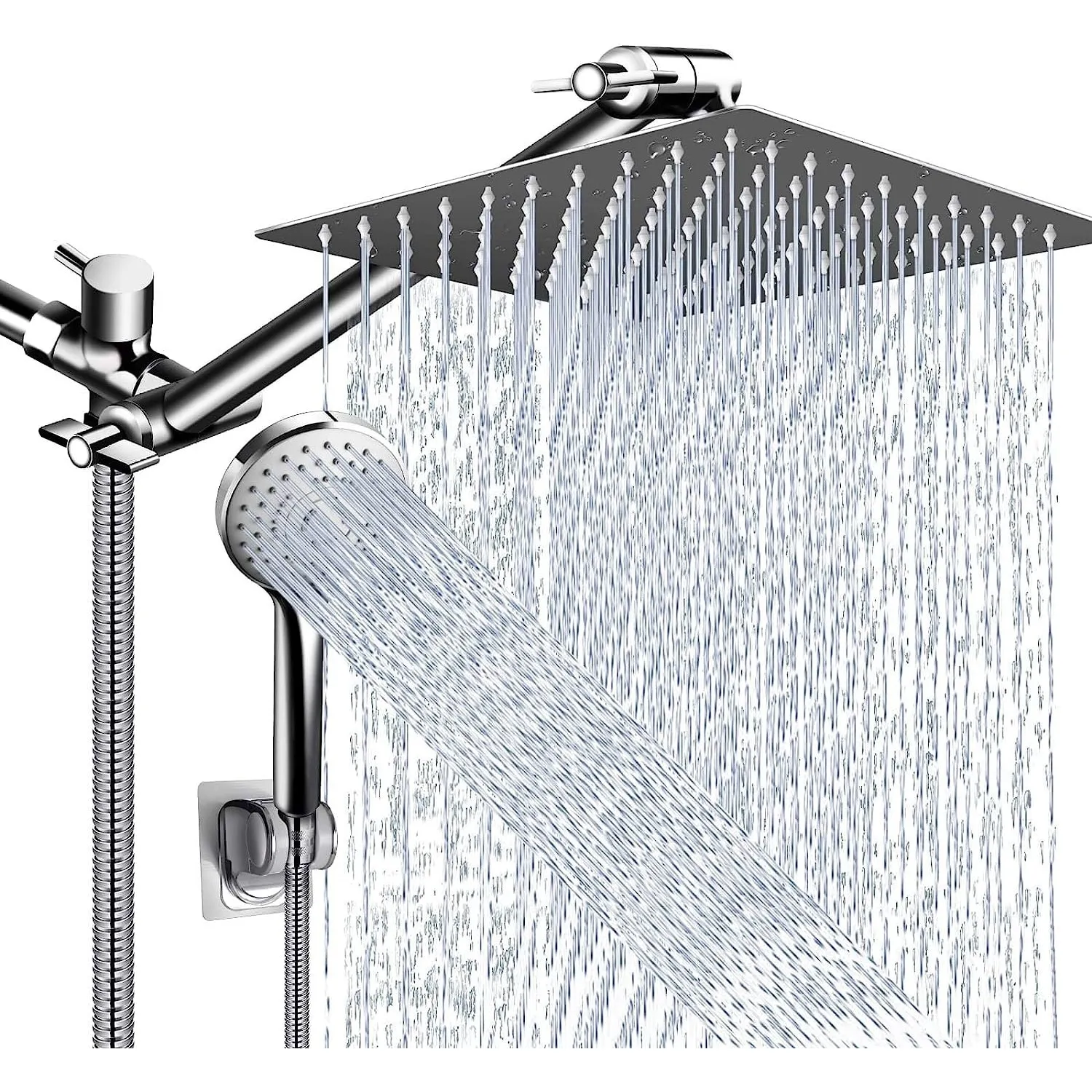 Set de dus, cu suport fix, brat extensibil reglabil, montare in perete, 5 moduri de pulverizare, para dus mobila, cromat