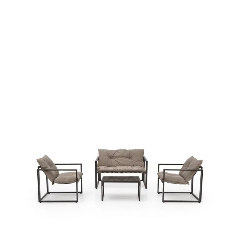 Setul de exteriorSharkde laHalmareste solutia perfecta pentru iubitorii relaxarii in aer liber, dar si ai confortului si elegantei.Setul este compus dintr-o masa cu blat din sticla si din doua fotolii si o canapea dotate cu perne confortabile in culoarea cappuccino.Fiecare piesa de mobilier are cadrul realizat dinmetal acoperit cu pulbere,rezistent la intemperii,in culoarea negru. Astfel, setul va putea fi utilizat timp de mai multe sezoane.Canapeaua si fotoliile ausezutul tapitat cu o tesatura in culoarea cappuccinocare iti va asigura confortul necesar in timp ce te bucuri de vremea frumoasa.Nuanta deschisa a pernelor in combinatie cu negrul atemporal le confera pieselor de mobilier un design inedit, care se va potrivi in varii stiluri de amenajari exterioare sau interioare.Setul este excelent pentru orice balcon spatios, gradina sau terasa. Acesta va crea locul confortabil ideal pentru reuniunile cu familia si prietenii.Piesele de mobilier necesita o scurta asamblare conform instructiunilor insotitoare.Setul este acoperit de o garantie a producatorului de 2 ani in sistem Door-to-Door pentru confortul tau deplin.Iti livram setul de exteriorGRATUIToriunde in tara.IMPORTANT: Daca setul nu corespunde asteptarilor tale, in conformitate cu legislatia in vigoare, ai dreptul sa il returnezi in termen de 14 zile de la cumparare.Dimensiuni canapea:- lungime: 118 cm;- latime: 74 cm;- inaltime sezut: 41 cm;- inaltime totala: 68 cm.Dimensiuni fotoliu:- lungime: 65 cm;- latime: 74 cm;- inaltime sezut: 41 cm;- inaltime totala: 68 cm.Dimensiuni masa:- lungime: 75 cm;- latime: 45 cm;- inaltime: 40 cm.