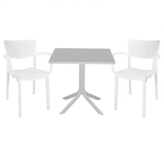 Set de gradina masa si scaune Groovy-Fontline set 3 piese plastic alb 80x80x74.5cm