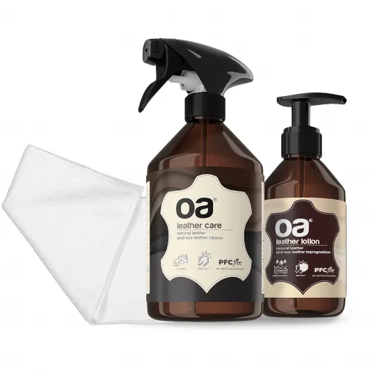 Set de ingrijire a tapiteriei din piele, solutie de curatare a pielii 500 ml, lotiune de impermeabilizare a pielii 250 ml, fara PFC, OA, microfibra