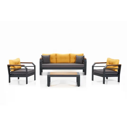 Cu designul sau de inspiratie industriala, setul nostru de lounge de gradina imbina fara efort stilul si functionalitatea. Combinatia de culori galben, gri si negru adauga o nota de eleganta moderna oricarui spatiu in aer liber, ceea ce il face un accesoriu perfect pentru gradina sau terasa dvs.