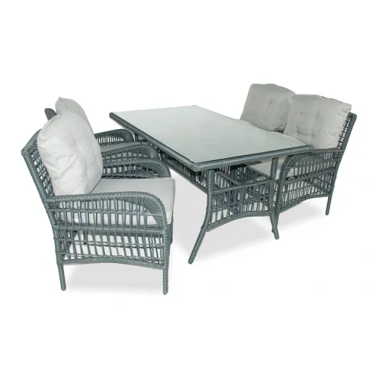 Avand un design modern si elegant, setul nostru de lounge va completa fara efort orice decor de exterior. Culoarea gri adauga o nota de rafinament, in timp ce liniile curate si estetica minimalista creeaza un aspect contemporan care cu siguranta va impresiona.