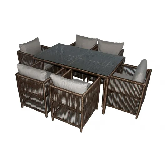 Setul de lounge de gradina are o culoare maro inchis uimitoare, care se potriveste fara efort cu orice decor de exterior. Apelul sau atemporal adauga o nota de rafinament spatiului dvs., creand o atmosfera primitoare pentru dvs. si pentru oaspetii dvs.