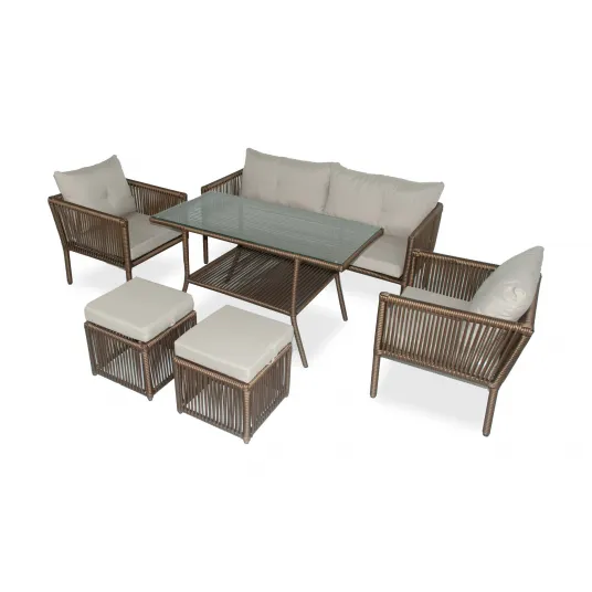 Transforma-ti spatiul exterior intr-un refugiu linistit cu setul nostru de lounge de gradina. Proiectat avand in vedere atat stilul, cat si confortul, acest set este completarea perfecta pentru orice gradina sau terasa. Fie ca doriti sa va relaxati cu o carte, sa va distrati cu prietenii sau pur si simplu sa va bucurati de frumusetea naturii, setul nostru de lounge va ofera cadrul ideal.