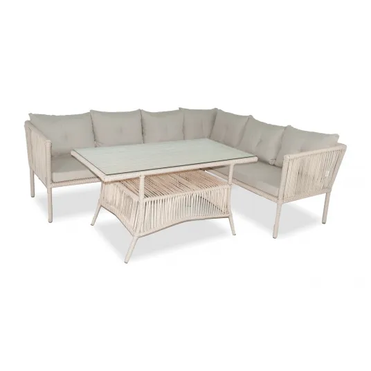Setul de lounge de gradina are o culoare crem uimitoare, care se potriveste fara efort cu orice decor de exterior. Indiferent daca stilul dvs. este modern sau traditional, aceasta culoare versatila se va integra perfect cu mobilierul si imprejurimile existente.