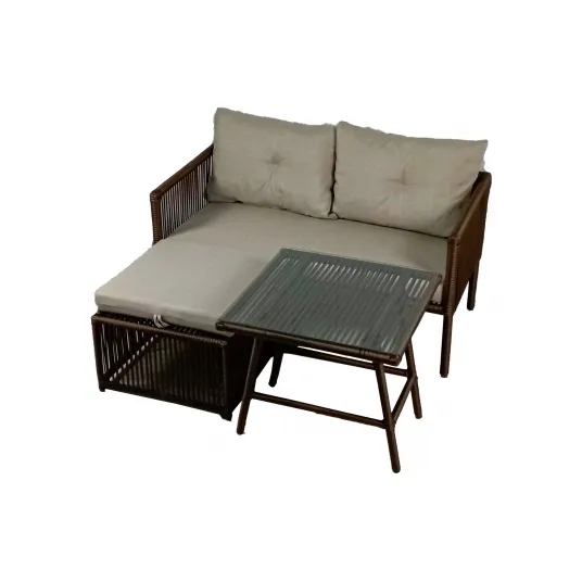 Cu un design elegant si modern, setul nostru de lounge de gradina adauga o nota de rafinament oricarui spatiu in aer liber. Culoarea maro inchis a setului completeaza orice decor, in timp ce liniile curate si estetica minimalista creeaza un aspect atemporal care nu se va demoda niciodata.