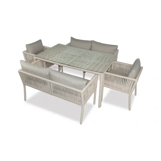 Setul de lounge de gradina include o masa spatioasa, doua scaune confortabile si doua canapele confortabile, oferind locuri ample pentru dvs. si pentru cei dragi. Fie ca va bucurati de o ceasca de cafea dimineata sau gazduiti un gratar cu prietenii, acest set este conceput pentru a se potrivi tuturor nevoilor dvs.