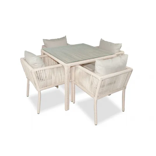 Setul de lounge de gradina include patru scaune si o masa, oferind locuri ample pentru dvs. si cei dragi. Scaunele sunt proiectate cu gandul la confortul dvs., avand o latime si o inaltime generoasa, precum si un scaun adanc pentru o relaxare maxima. Fie ca savurati o ceasca de cafea dimineata sau gazduiti o cina, acest set va va face sa va simtiti ca acasa.