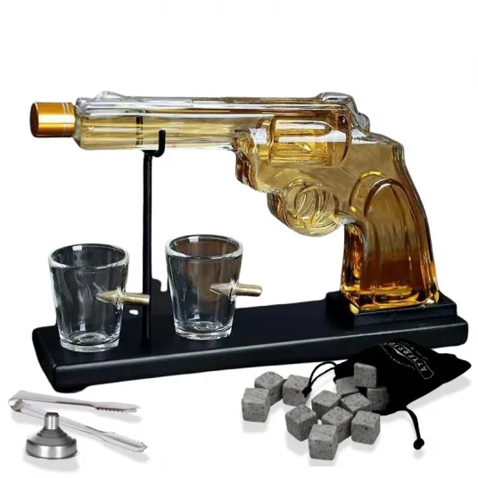 Set decantor, Mindblower, Pistol, 2 pahare cu glont si suport, transparent, din sticla, 300 mlSet decantor, Mindblower, Pistol, 2 pahare cu glont si suport, transparent, din sticla, 300 ml223453952223453952