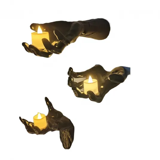 Set decor Halloween Feicaeesa, 3 maini realiste cu lumanari, montaj perete, NegruSet decor Halloween Feicaeesa, 3 maini realiste cu lumanari, montaj perete, Negru223178859223178859