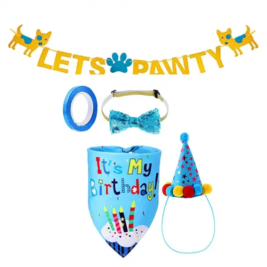 Set decoratiuni aniversare, pentru catei si pisici, 4 piese, Sundiguer, Multicolor
