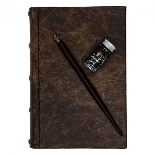 Set din piele naturala Jurnal cu penita si cerneala, Unika, maro