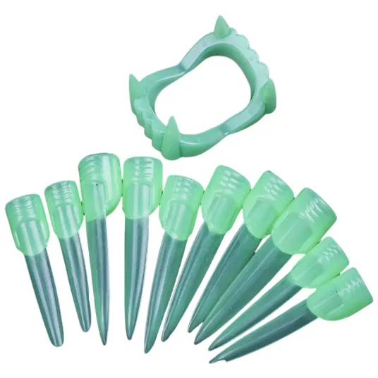 Set dinte/10 unghii false pentru Halloween, luminoase, verde