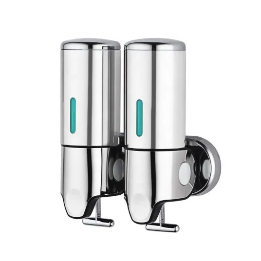 Set dispenser gel de dus, sampon, sapun lichid, balsam sau conditioner pentru baie, bucatarie, hotel, 2 X 500 ml, argintiu