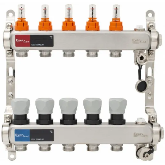 Set distribuitor Everline EVP-DSB3411/5, cu debitmetre, aerisitor manual si Robinetide golire 1''- 5 cai, Inox