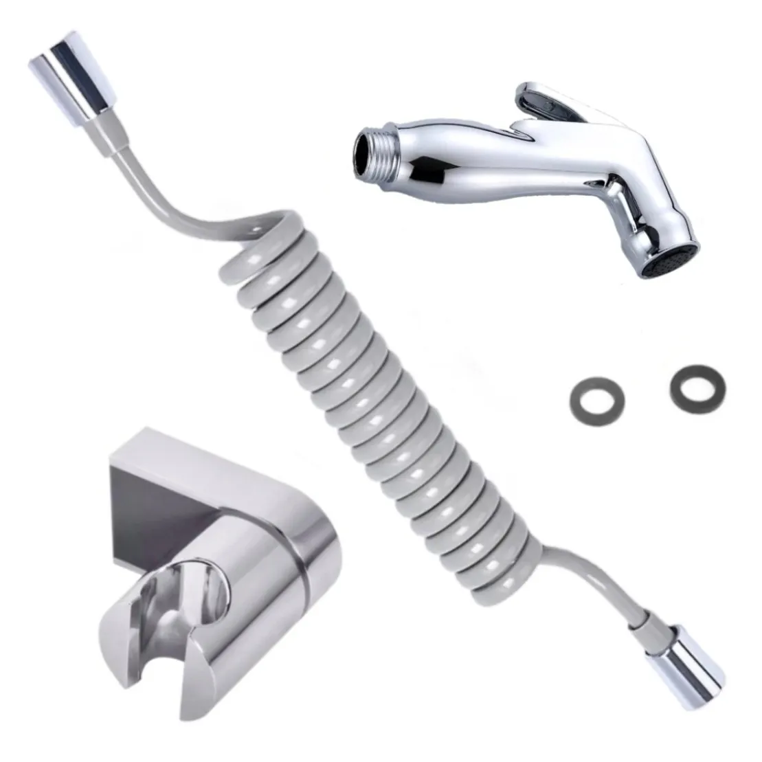 Set dus cu furtun spiralat gri 2m, para bideu si suport cromat plastic