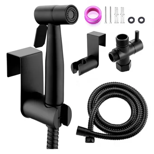Set dus igienic pentru igiena intima, Rqiurpn, pulverizator manual din inox, montare pe perete sau toaleta, presiune reglabila, Negru