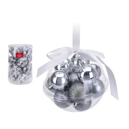 Statisticile arata ca ornamentele pentru pomul de Craciun sunt una dintre cele mai populare decoratiuni de sarbatori, milioane de gospodarii impodobindu-si pomii in fiecare an. Alegand ornamentele noastre sferice cu panglica argintie de 14x40 mm, puteti crea un copac remarcabil care va fi cu siguranta invidia tuturor prietenilor si familiei dumneavoastra.