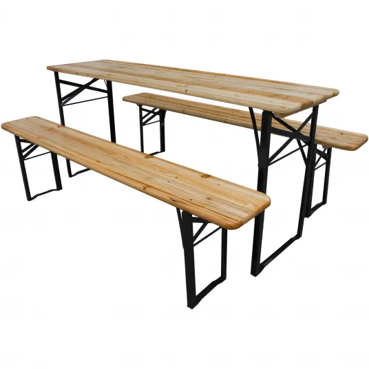 Set Gradina Heinner masa cu 2 banci, lemn, pliabila, dimensiuni 167x46x75 cm