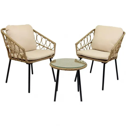 Set gradina Kring, Deira, masa cafea diametru 45 cm, h45 cm, 2x scaune 60x61x78 cm, culoare bej, include perne