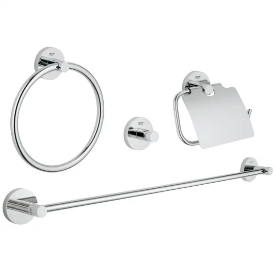 Set Grohe Essentials Master 4 in 1, cuier, suport prosop si hartie igienica, fixare perete ascunsa, Crom