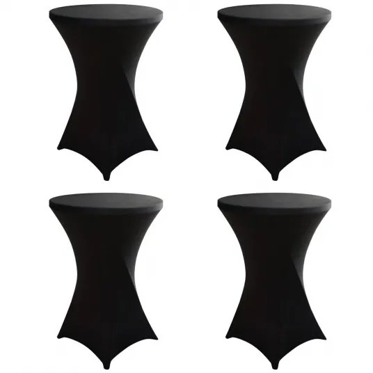 Set huse masa evenimente, Axroad Mall, 4 bucati, Husa elastica, Forma rotunda, Fara riduri, Rezistent la praf, Usor de instalat si de indepartat, Pentru masa cocktail, Poliester, d 80 cm, h 110 cm, Negru