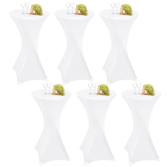 Set huse masa evenimente, Axroad Mall, 6 bucati, Husa elastica, Forma rotunda, Fara riduri, Rezistent la praf, Usor de instalat si de indepartat, Pentru masa cocktail, Poliester, d 80 cm, h 110 cm, Alb