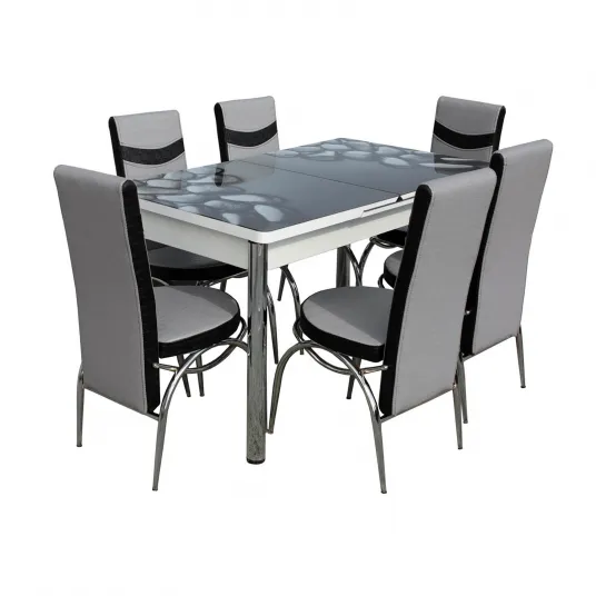 Set Lara, masa extensibila cu 6 scaune, negru + gri, 130 165x80x79 cm