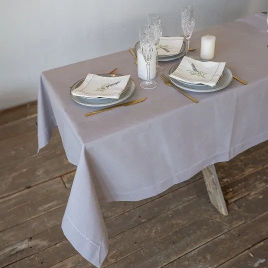 Set Lavanda pentru 8 persoane, Fata de masa 130x220 cm, 8 servetele 35x35 cm, Mallena, Tricot din Poliester si Bumbac, Lila Gri