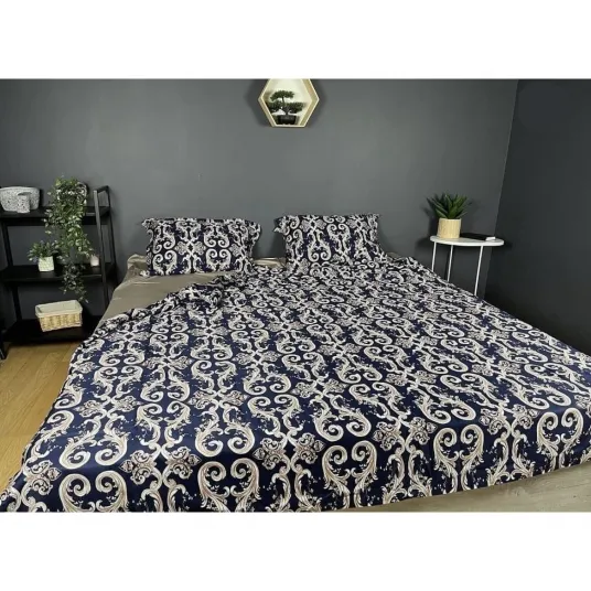 Set lenjerie de pat dublu, Anver Satin Ornament, husa pilota 200x225cm, cearceaf 220x240cm, fata de perna 50x70cm (2 buc), Borocco