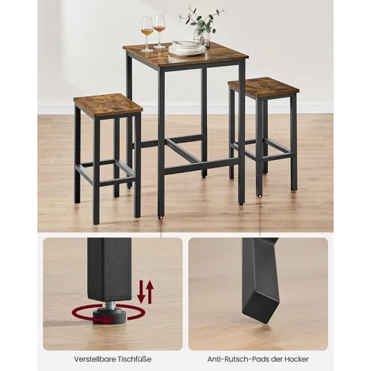 Usor de asamblat: Datorita instructiunilor clare atasate si a pieselor marcate, acest set de masa de bar cu scaune de bar poate fi montat in cel mai scurt timp.