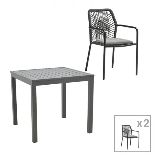 Set masa si scaune 3 buc de gradina Kliton-Kherson Pako World Antracit 80x80x74 cm