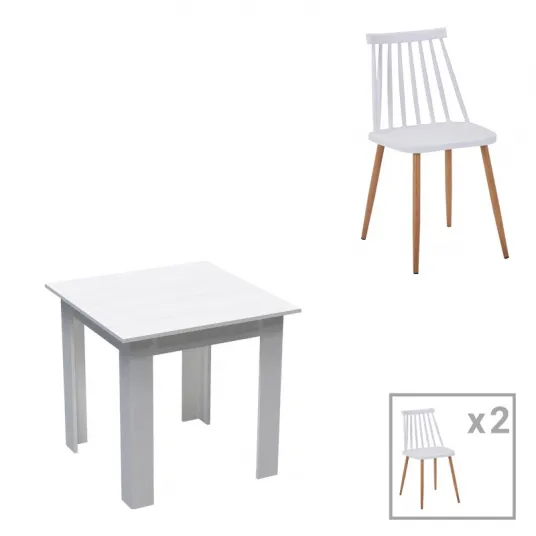 Set masa si scaune 3 piese Manka I-Aurora I Alb 80x80x77 cm