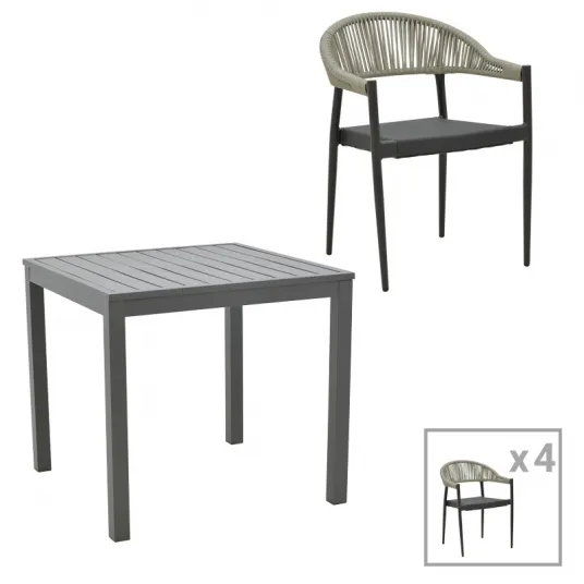Set masa si scaune 5 buc de gradina Elation Pako World Antracit 80x80x74 cm