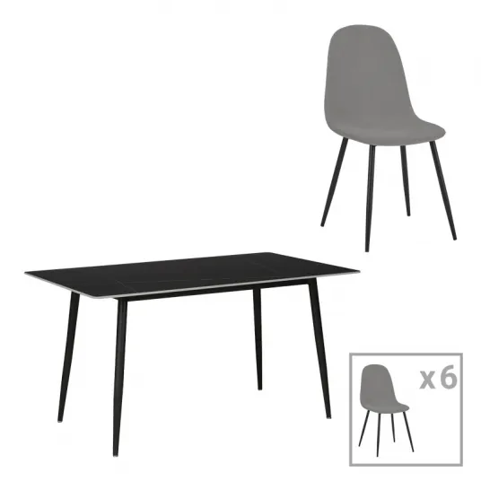 Transforma-ti diningul intr-un spatiu elegant si confortabil cu setul de masa si scaune Bella de la PakoWorld. Acest set modern, disponibil in nuante de gri si negru, este perfect pentru a petrece momente de neuitat alaturi de familie si prieteni.