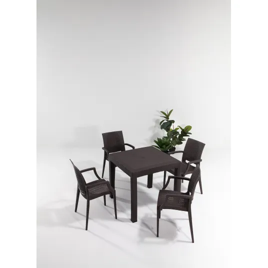 Set masa si scaune de gradina (5 bucati) Rattan 80x80 Small Lux Masa Takimi - Maro