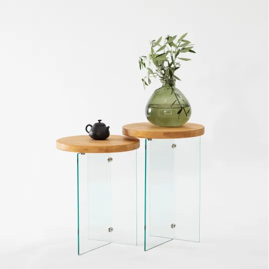 Realizat din sticla 100% calita, setul nostru de masa de cafea emana un farmec atemporal care va va captiva instantaneu oaspetii. Blatul din sticla transparenta pune in evidenta frumusetea naturala a cadrului din stejar, creand un amestec armonios de modernitate si caldura.