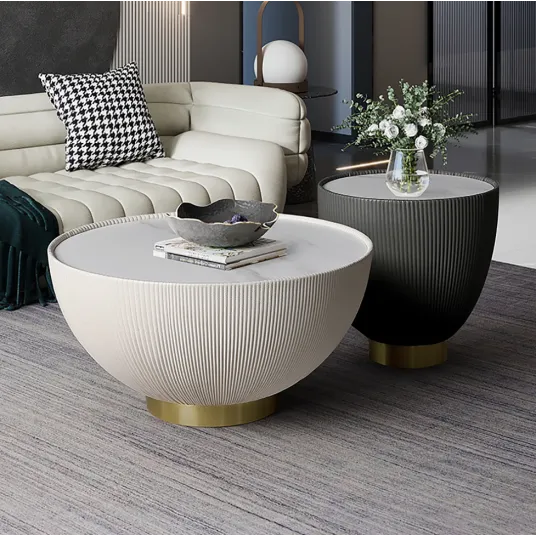 Setul de masute de cafea Bowl este un produs deosebit de elegant si modern, perfect pentru a aduce un aer sofisticat si rafinat in orice decor de living sau sufragerie. Fabricat din material de inalta calitate, suprafata masutelor este confectionata dintr-un material rezistent si durabil - piatra sinterizata, care ii confera o textura atragatoare si aspect luxos in culori gri neutre. Aceasta nuanta se potriveste perfect in diverse combinatii de culori si stiluri de amenajare interioara. Cu un design simplu si elegant, masutele au forma rotunda, asigurand un aspect placut si o integrare facila in orice spatiu. Ambele piese ale setului sunt prevazute cu un suport elegant in forma de piedestal, realizat dintr-un amestec de metale si otel inoxidabil, conferindu-i rezistenta si stabilitate. \n \nDimensiuni: 1 masuta de 80cm diametru si 42cm inaltime + 1 masuta de 50cm diametru si 48cm inaltime. \n \n*Culorile produsului pot sa difere puţin, pot suferi modificari in funcţie de fundalul pozei, rezoluţie, saturaţie sau luminozitate.