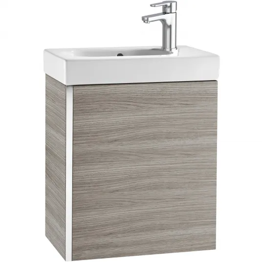 Set mobilier baie cu lavoar Roca Unik Mini, usi soft-close, suspendat, lavoar portelan, 450 x 250 x 575 mm, sand