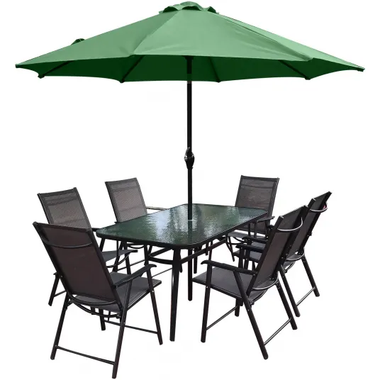 Set mobilier gradina Heinner Zamora, masa 150x90cm, 6 scaune pliabile, umbrela,verde