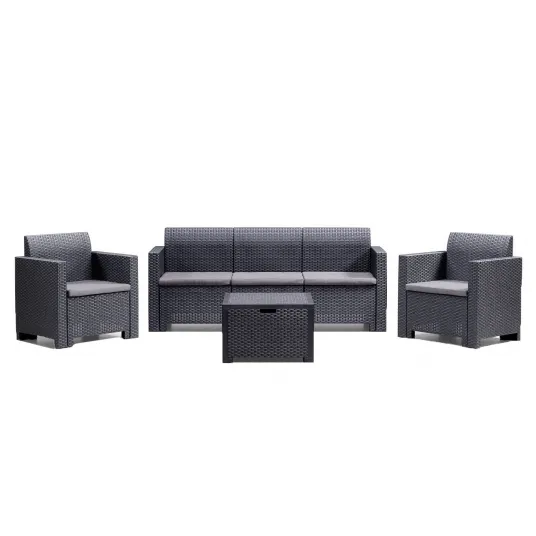 Set mobilier gradina/terasa Nebraska, canapea 3 locuri + 2 fotolii + masuta depozitare, perne incluse, grafit