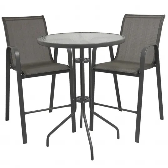 Set mobilier gradina/terasa/balcon Kring Bruxelles Bar, masa, 2 scaune, metal/sticla, gri
