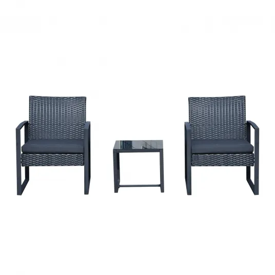 Set Mobilier Outsunny in Rattan de Extern Masa cu 2 Scaune si Perne , Negru