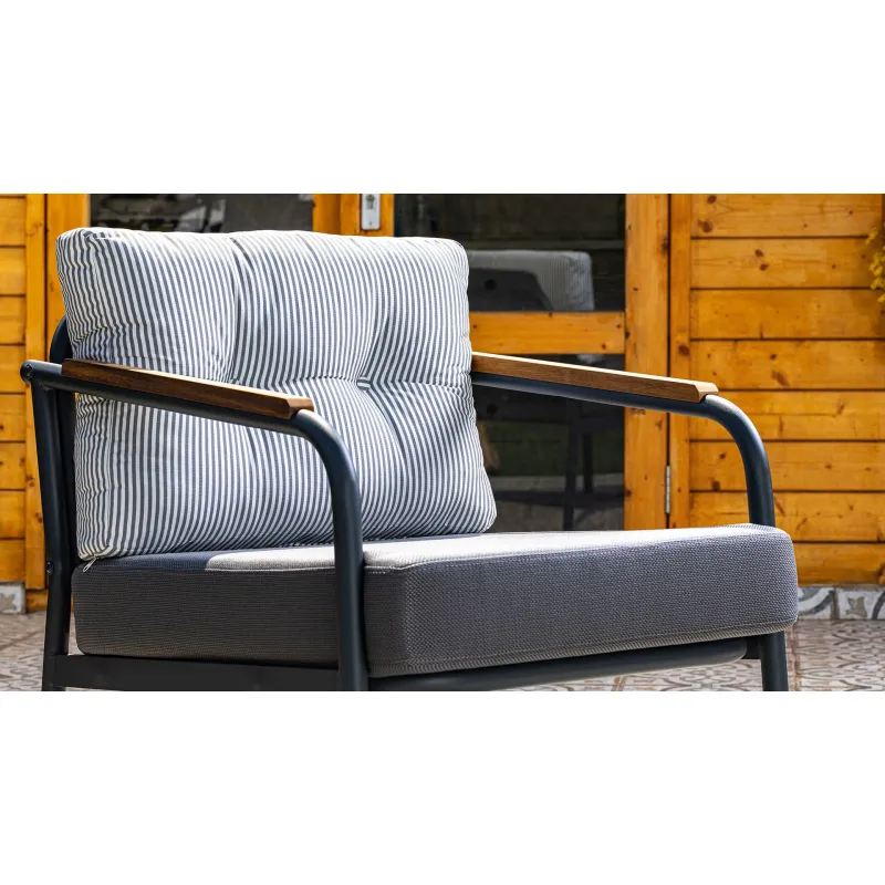 Dogtas Set mobilier pentru gradina LINDA (2+1+1+masa)Dimensiuni fotoliu (2 buc.): Lungime: 64 cm Latime: 71 cm Inaltime: 78 cm Dimensiunia canapea cu 2 locuri (1 buc.): Lungime: 128 cm Latime: 71 cm Inaltime: 78 cm Dimensiuni masa de cafea (1 buc.): Lungime: 97 cm Latime: 55 cm Inaltime: 41 cm Articol: 3120012866. Colectia: Linda Descriere: Gradina este locul unde ne petrecem timpul liber, de aceea este foarte important sa acordam o mare atentie la mobilierul ales. Elegant, stilat, original sau rustic, orice ai alege pentru gradina ta trebuie sa fie confortabil si durabil. Setul de gradina este un must-have pentru zilele de vara, foarte confortabil te va ajuta sa te relaxezi in gradina sau pe terasa. Setul este format din: – 2 fotolii – canapea fixa de 2 locuri -masa de cafea Detalii tehnice: Cadrul este realizat din aluminiu. Husa pernelor sunt confectionata din stofa impermeabila. Articol: 3120012866, Colectie LINDA222606670222606670