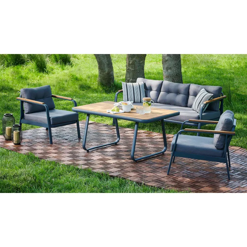 Dimensiuni fotoliu (2 buc.): Lungime: 67 cm Latime: 80 cm Inaltime: 81 cm Dimensiunia canapea cu 3 locuri (1 buc.): Lungime: 185 cm Latime: 80 cm Inaltime: 81 cm Dimensiuni masa (1 buc.): Lungime: 155 cm Latime: 95 cm Inaltime: 78 cm Articol: 3120012867. Colectia: Lounge Descriere: Gradina este locul unde ne petrecem timpul liber, de aceea este foarte important sa acordam o mare atentie la mobilierul ales. Elegant, stilat, original sau rustic, orice ai alege pentru gradina ta trebuie sa fie confortabil si durabil. Setul de gradina este un must-have pentru zilele de vara, foarte confortabil te va ajuta sa te relaxezi in gradina sau pe terasa. Setul este format din: – 2 fotolii – canapea fixa de 3 locuri – masa Detalii tehnice: Cadrul este realizat din aluminiu. Husa pernelor sunt confectionata din stofa impermeabila. Articol: 3120012867, Colectie LOUNGE
