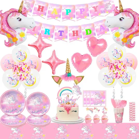 Set petrecere unicorn InBoxxarty, decoratiuni si vesela de unica folosinta, multicolor