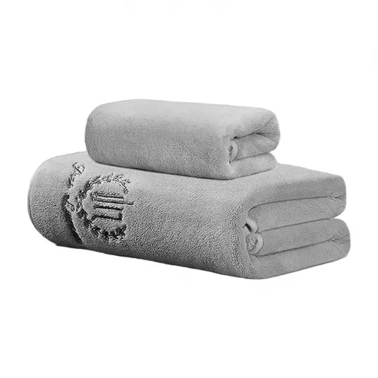 Set prosop de baie si fata, absorbant si durabil, gri, 140x70cm/35x75cm
